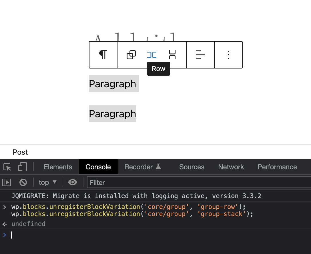 BlockGroupToolbarto only display Row/Stack variation buttons if they're registered.Why?