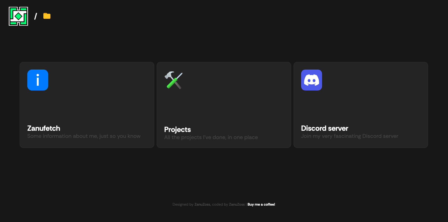ZanuZoss Website A simple website with information about me and my projects π Visit this website Screenshot of zanuzoss.website Homepage