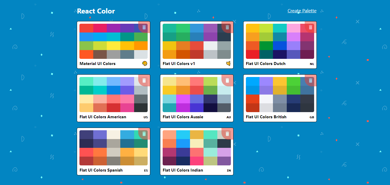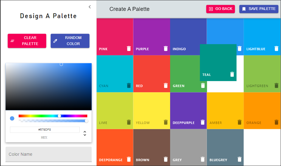 React Colors Project A clone of websites like Flat UI Colors and Material UI Colors. One of the projects for React Js Practice. These are some screenshots || visit https://reactjs-colors-app.netlify.app/ to interact with the app :)