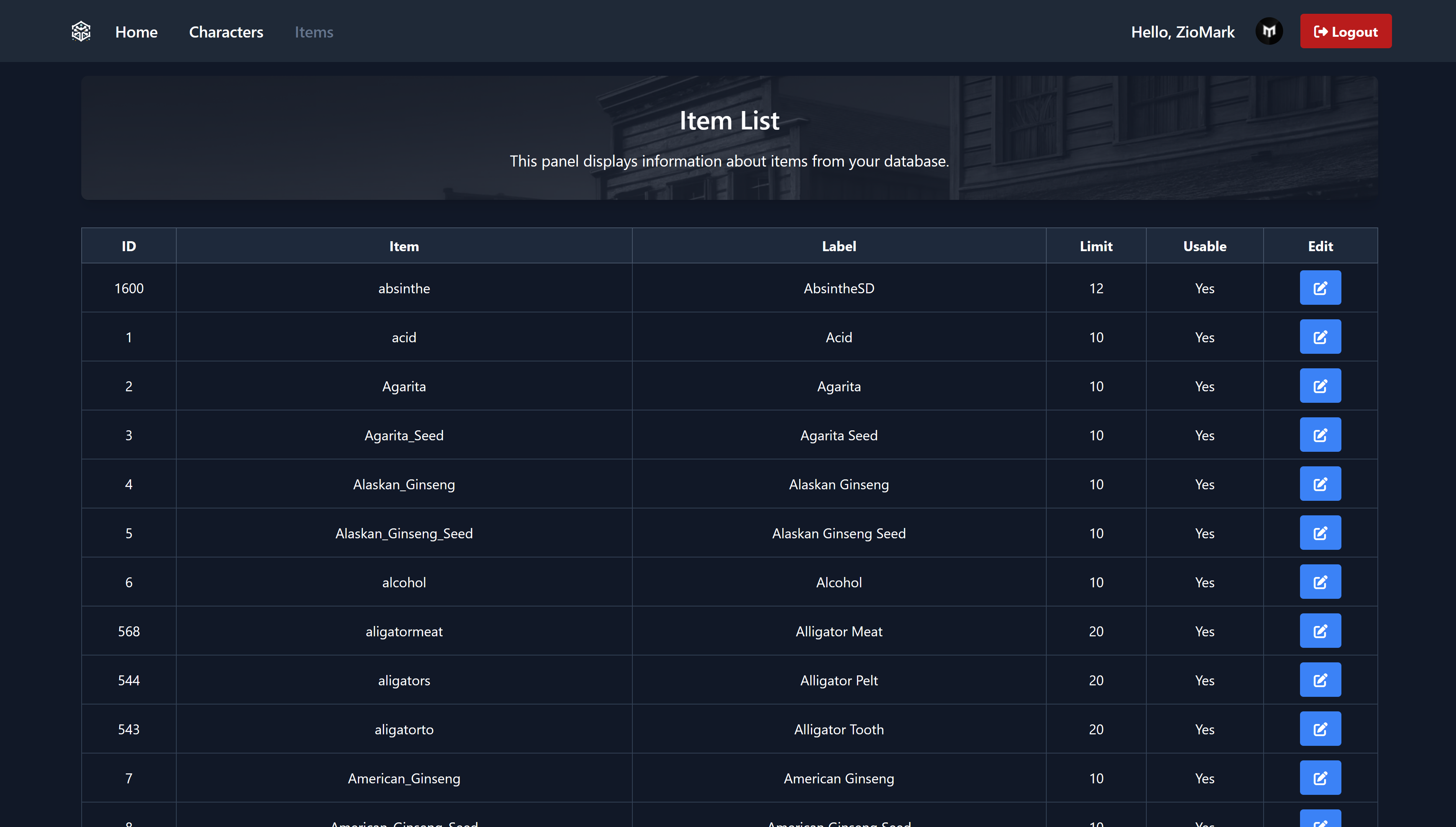 - Live view of character data: The panel reads the characters table live from the VORP server database, ensuring that you always have up-to-date information.