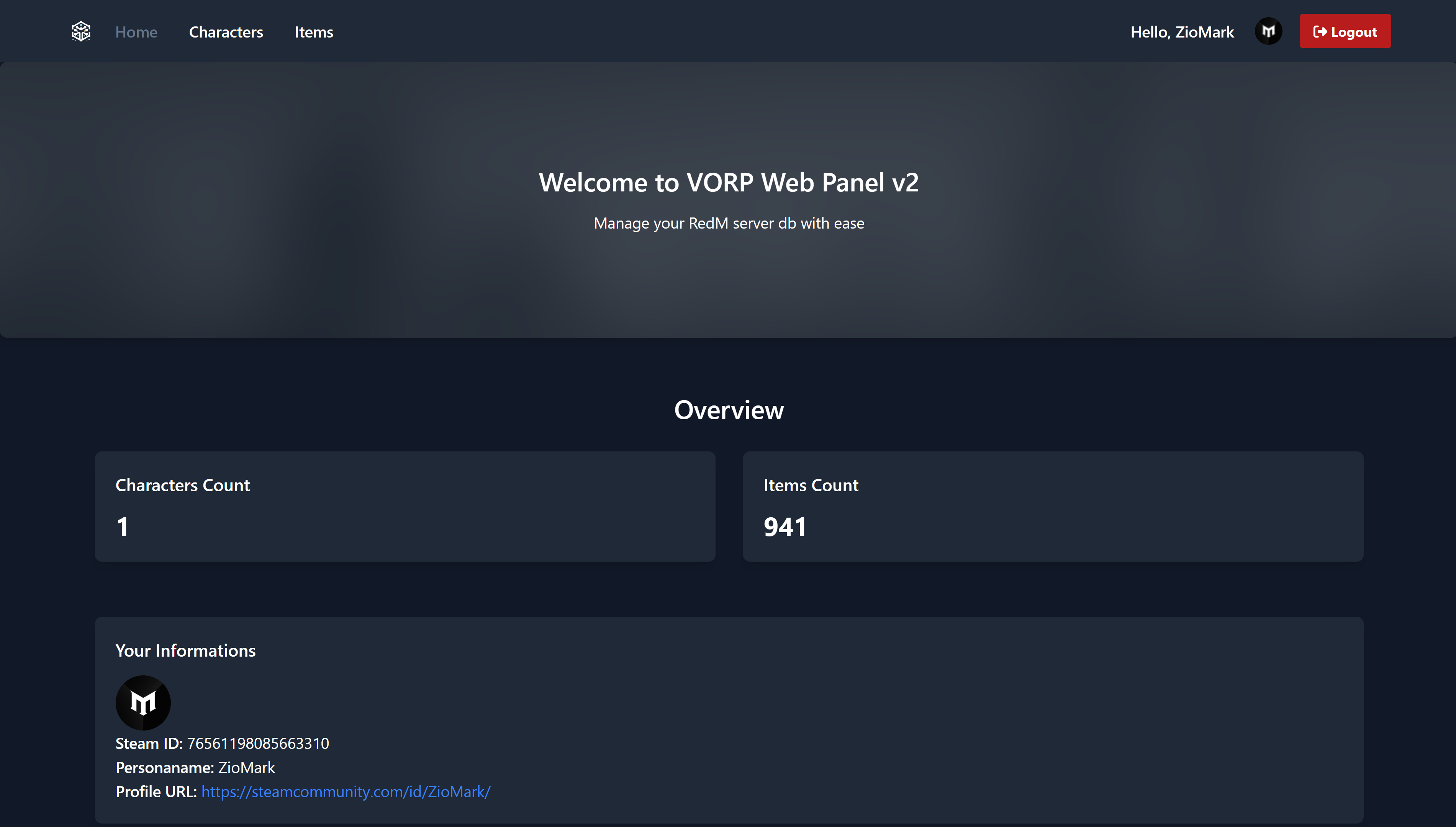 The VORP Web Panel is designed to offer a user-friendly interface for administrators to access character data directly from the database. With this panel, you can: