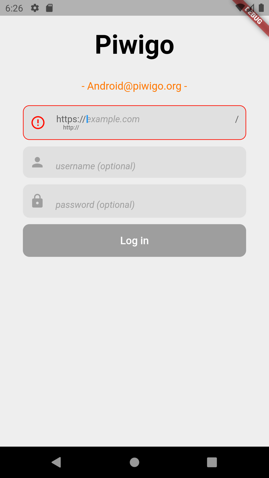 - If the given URL is empty, the Log in button will be disabled.