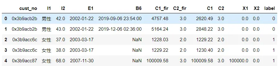 cust_no:客户编号;I1 :性别;I2:年龄 ;E1:开户日期;