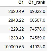 df['C1_rank'] = df['C1'].rank(ascending=0, method='dense')