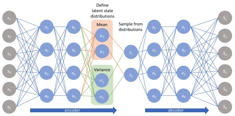 自动编码器学习一个输入(可以是图像或文本序列)的压缩表示,例如,压缩输入,然后解压缩回来匹配原始输入,而变分自动编码器学习表示的数据的概率分布的参数。不仅仅是学习一个代表数据的函数,它还获得了更详细和细致的数据视图,从分布中抽样并生成新的输入数据样本。