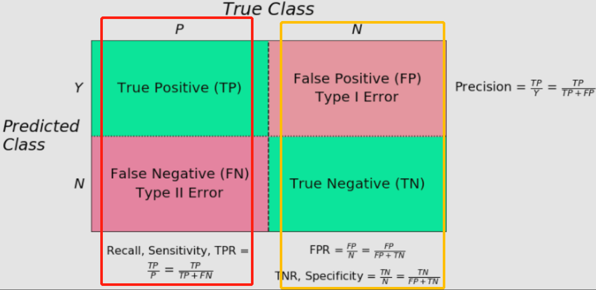 查准率P(precision):是指分类器预测为Positive的正确样本(TP)的个数占所有预测为Positive样本个数(TP+FP)的比例;