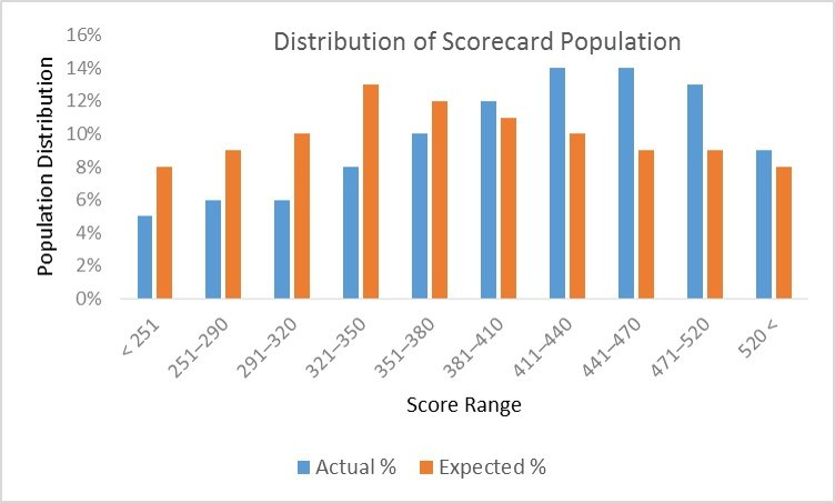 - step2: 按相同分箱区间,对实际分布(测试集)统计各分箱内的样本占比。