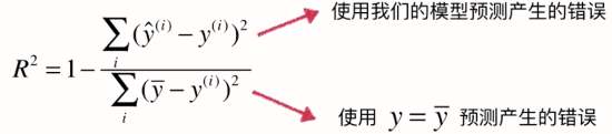 R^2分数可以视为我们模型的均方误差除以用实际值平均值作为预测值时的均方误差(像baseline模型)的比值。