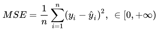 均方误差(MSE)为实际值与预测值的差值取平方求平均。其中y是实际值,y^ 是预测值