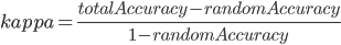 其公式含义可解释为总准确度对比随机准确度的提升 与 完美模型对比随机准确度的提升的比值: