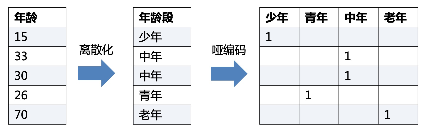 - 离散化后模型会更稳定,且不容易受到噪声影响,减少过拟合风险:比如对用户年龄离散化,18-22作为一个区间,不会因为一个用户年龄长了一岁就变成一个完全不同样本。