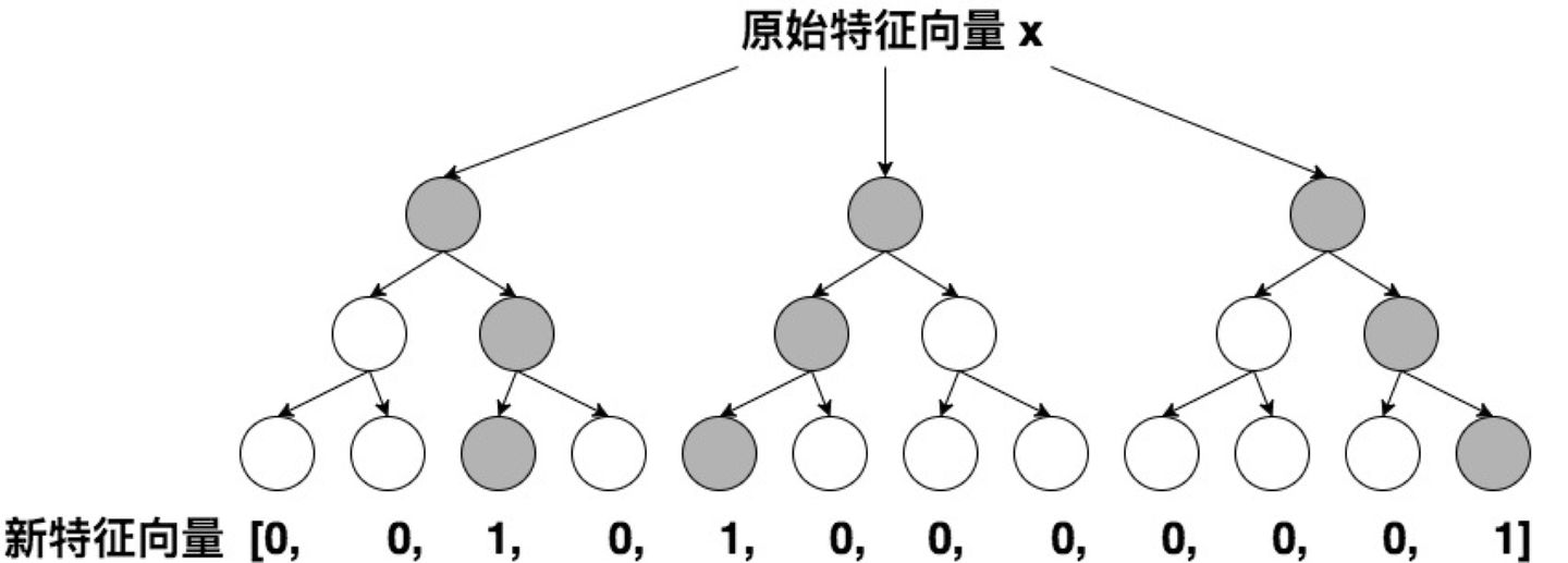 train_new_feature = gbdt.apply(x) # 返回数据在训练好的模型里每棵树中所处的叶子节点的位置