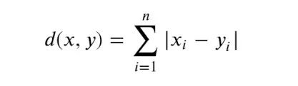 曼哈顿、欧几里得距离的计算方法很简单,就是计算两样本(x,y)的各个特征i间的总距离。