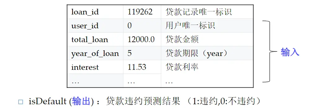 该数据集为中原银行的个人贷款违约预测数据集,个别字段有做了脱敏(金融的数据大都涉及机密)。主要的特征字段有个人基本信息、经济能力、贷款历史信息等等