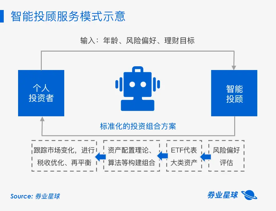 智能投顾利用大数据和机器学习,将大量的数据和国内外各类信息,尤其是基本面相关的信息与投资决策进行智能整合,并通过内部算法将收集的数据进行智能化关联,在给投资者提供参考同时也能提高投资者工作效率。