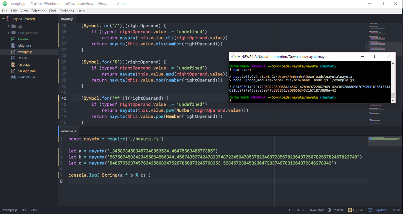 big.js is support BigInteger & BigDecimal Arithmetic Calculate.