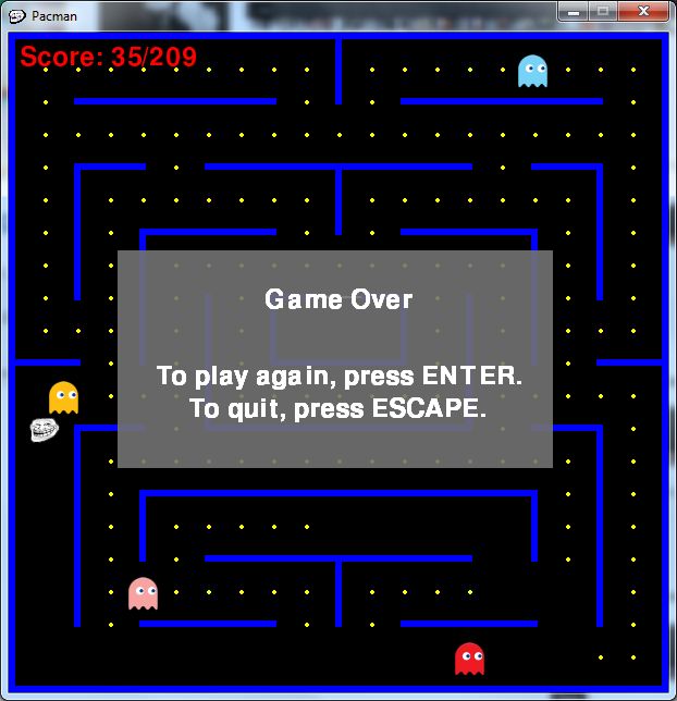 This is a very minimal implementation of the Pacman game, having only one level and without ghosts strategy, not even with random movements (yes, the routes are programmed). However, we may improve this game in the future and everyone else interested can feel free to fork and contribute to this project.