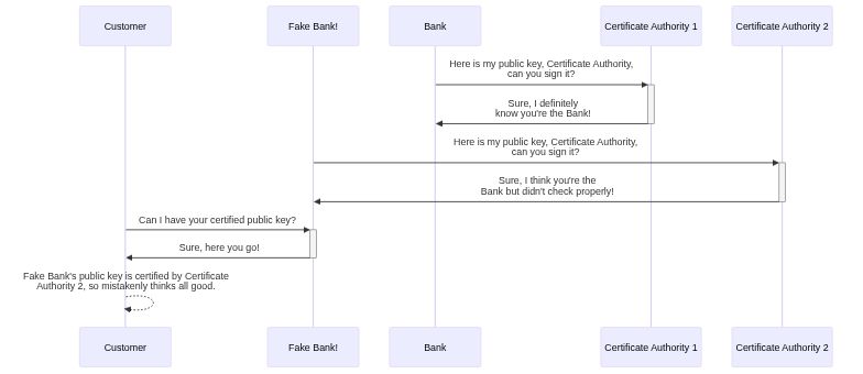 However, if only one is available and it is a spurious one, the client will proceed to trust it