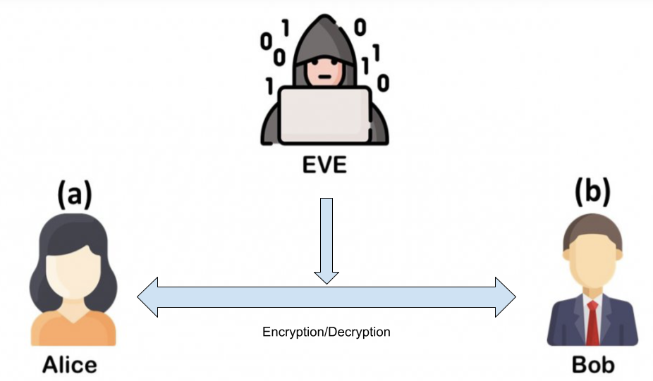 Allows messages to be passed between Alice and Bob privately without E(a)ve(sdropping)