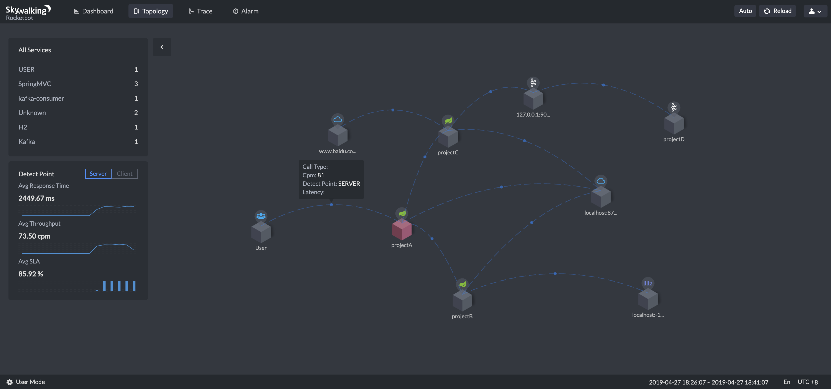 SkyWalking: an APM(application performance monitor) system, especially designed for microservices, cloud native and container-based (Docker, Kubernetes, Mesos) architectures.
