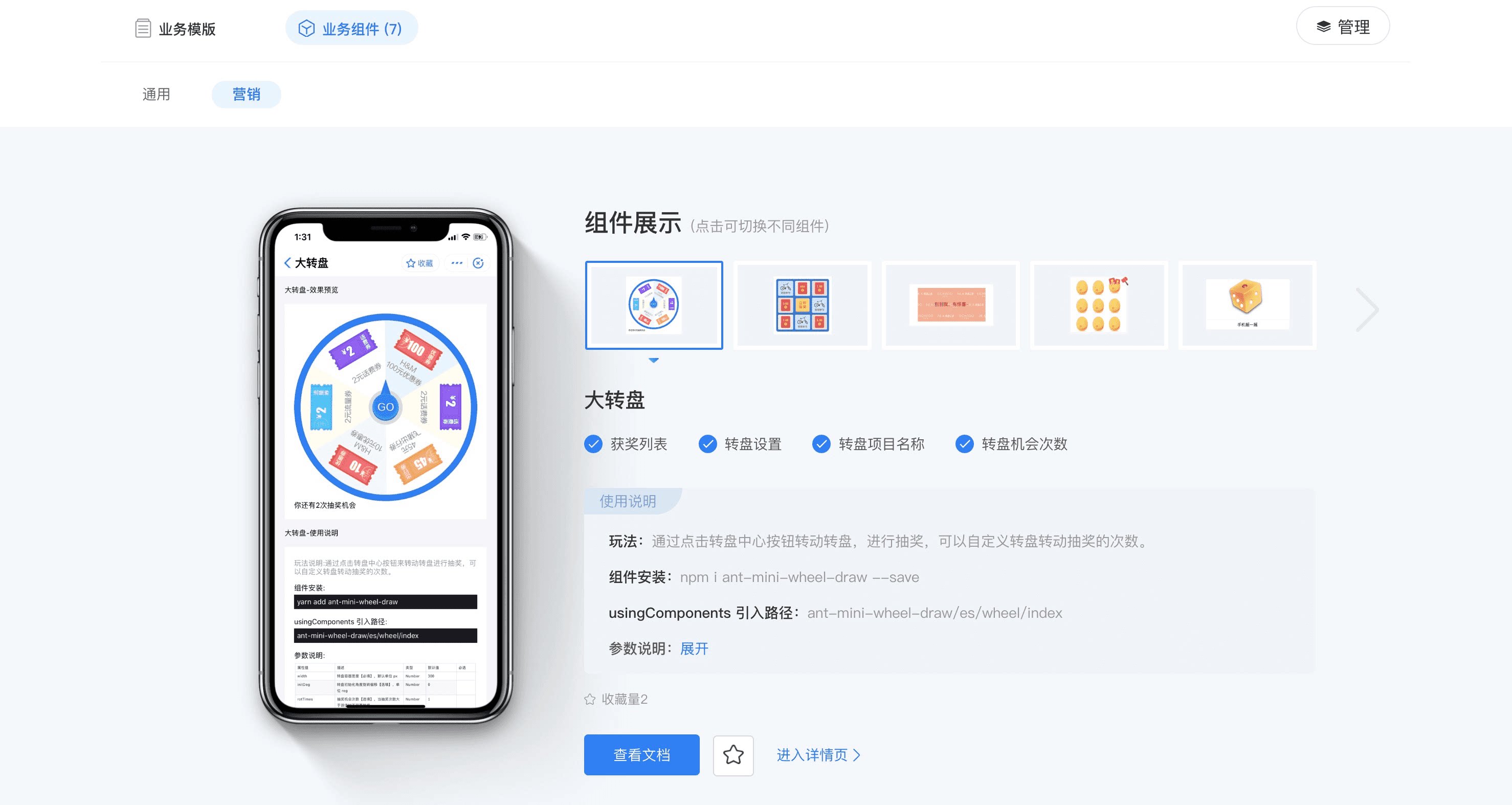 该项目为营销玩法小程序汇总仓库,每个文件夹下面都是一个独立的组件包,可单独引用,目前已有组件: