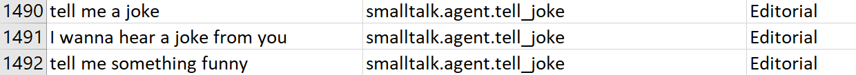 Let's say you wanted your smalltalk module to handle when the user wants a joke. Add the following to the smalltalkkb.tsv file: