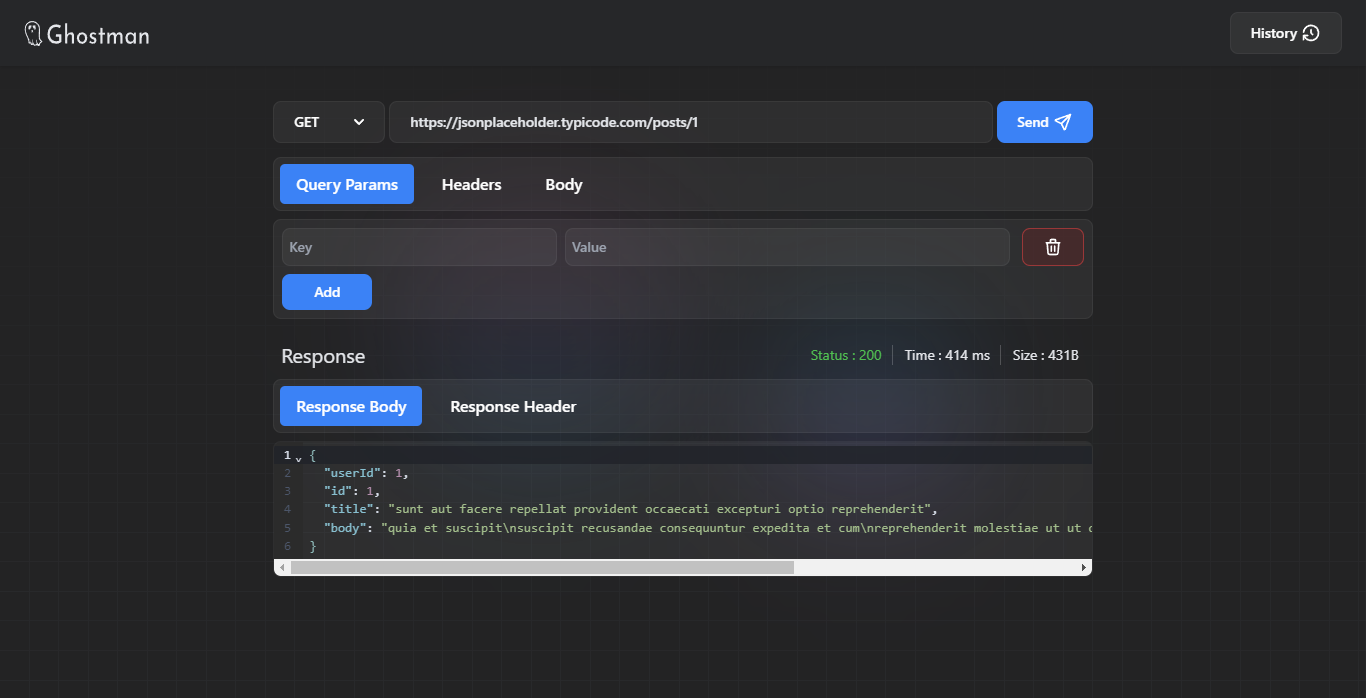 A simple clone of Postman, a popular API testing tool, built using React. This project aims to provide a user-friendly interface for making API requests, and visualizing responses.
