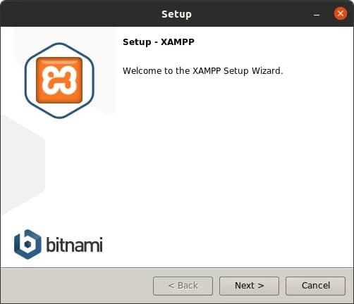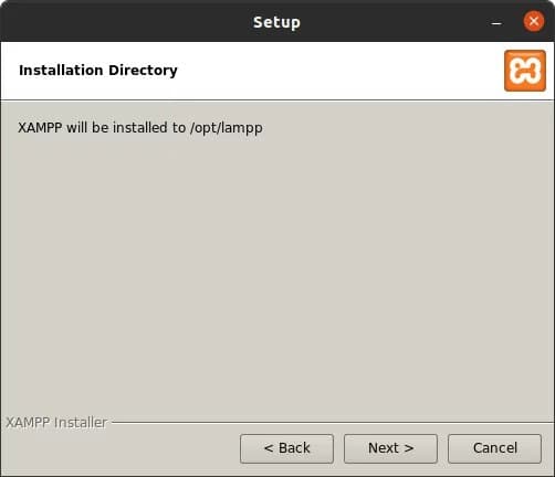 No momento em que você executar o comando de instalação, um assistente de configuração do XAMP será aberto. Clique no botão