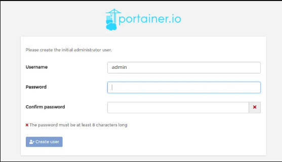 Em seguida, acesse o seu servidor na porta 9000 para prosseguir a instalação: