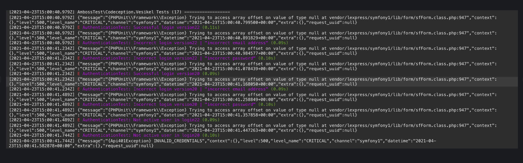$this->validatorSchema was used in line 947 before it was initialized, this code $this->validatorSchema[self::$CSRFFieldName] tries to access a key in validatorSchema the usage is triggered by $this->setDefaults($defaults) which calls the function $this->isCSRFProtected() this resulted in an exception trying to access array offset on value of type null