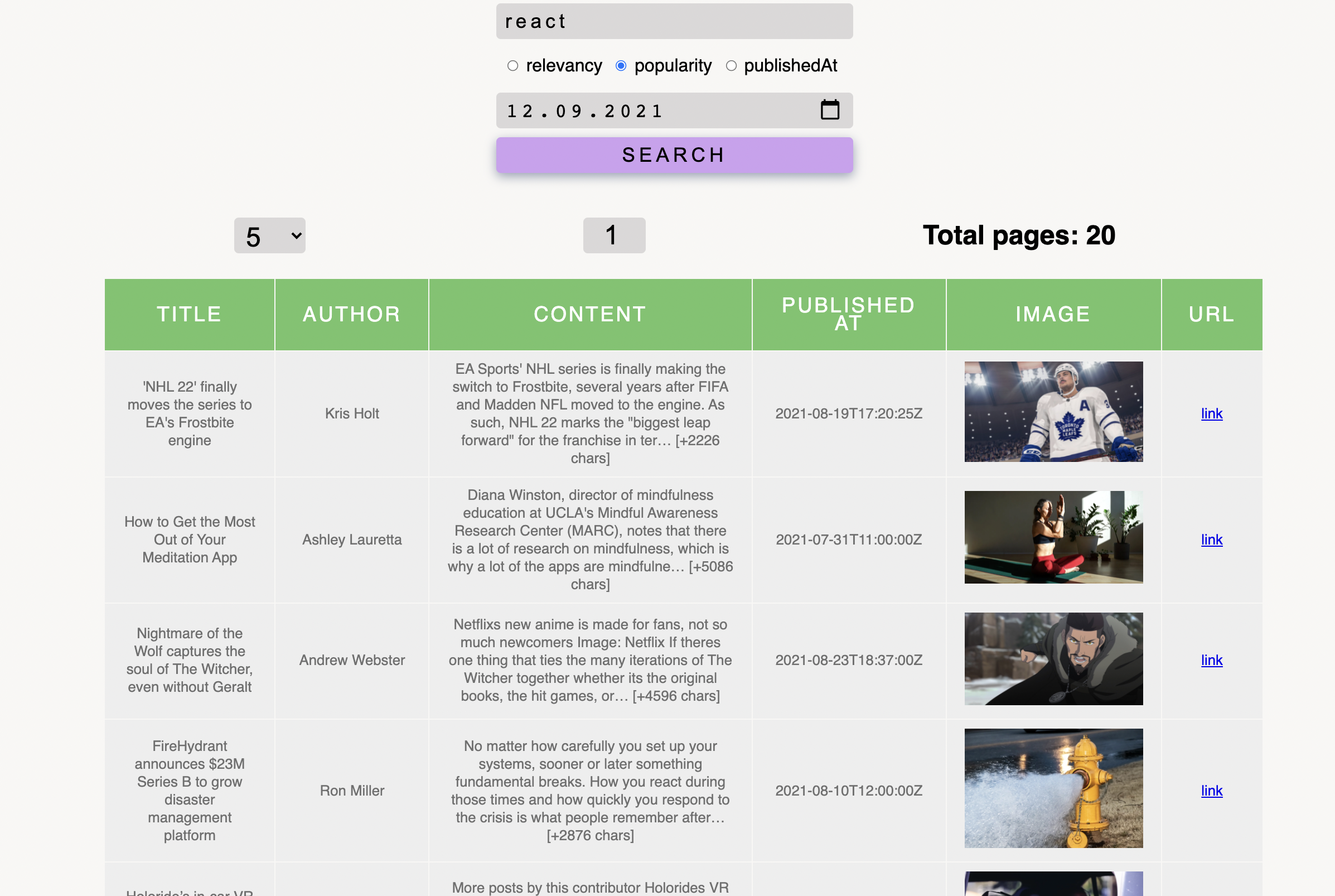 3. Выполнено задание согласно пунктам: строка поиска, список резульатов, переключатели сортировки, пагинация