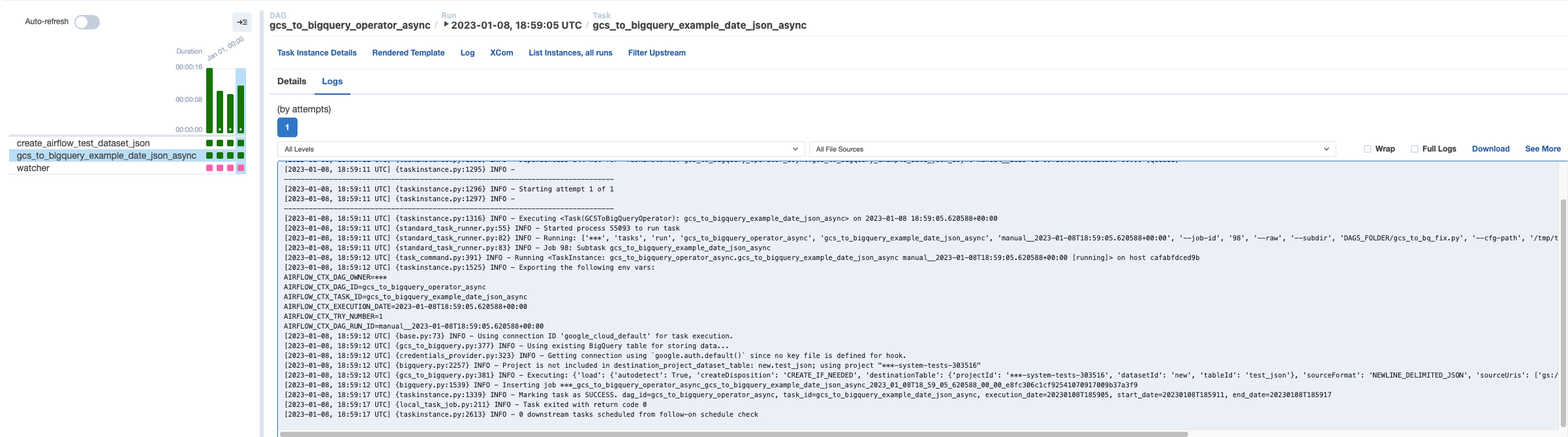 Error: [2023-01-06, 23:26:20 UTC] {standard_task_runner.py:92} ERROR - Failed to execute job 161546 for task gcs_to_gbq (400 POST https://bigquery.googleapis.com/bigquery/v2/projects/jobs?prettyPrint=false: Field "amount": "1"} already exists in schema; 167458) I'm not sure why the operator is throwing a schema error for a write truncate operation and autodetect=True. This never happened and it worked until last week. I hope this information helps. |