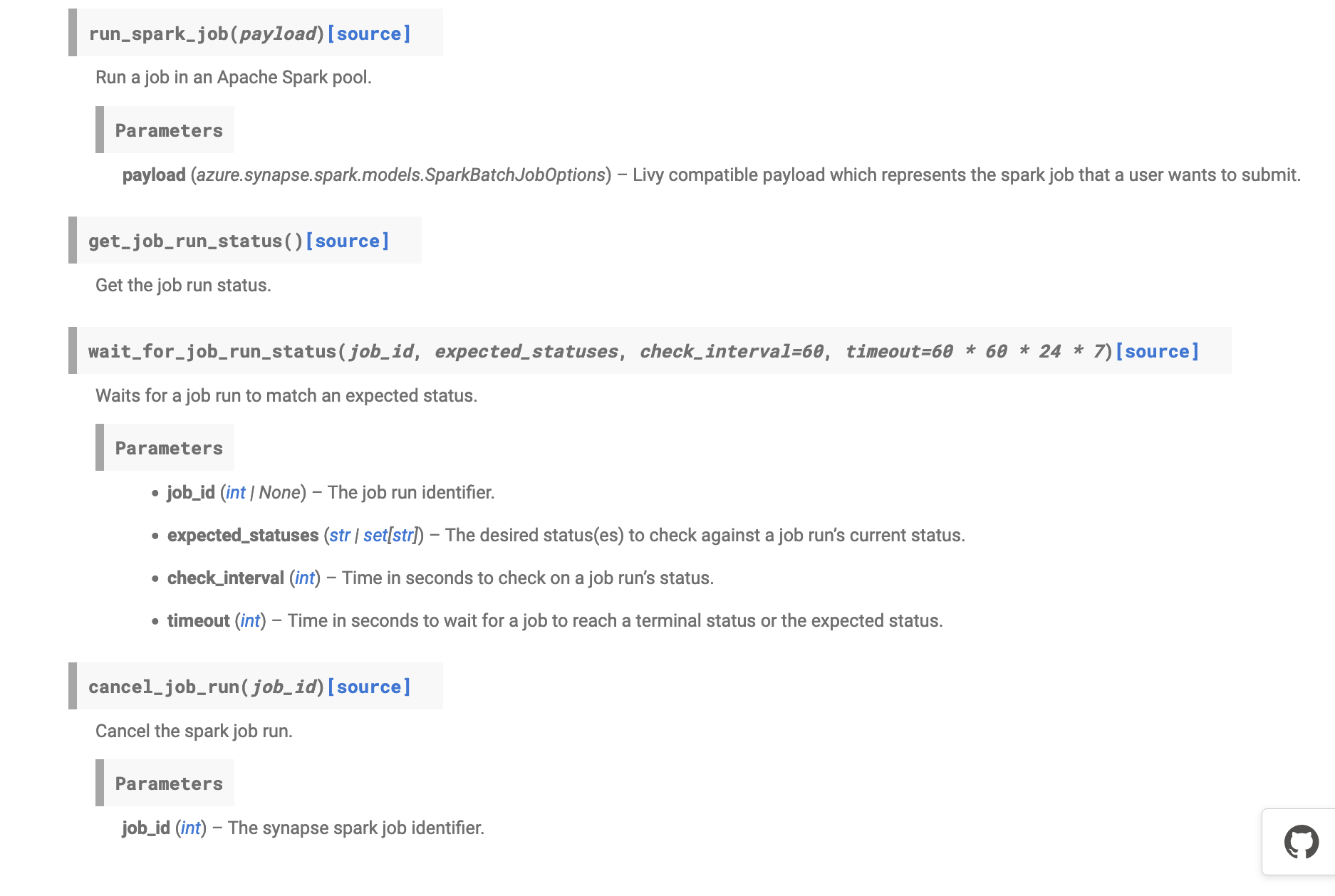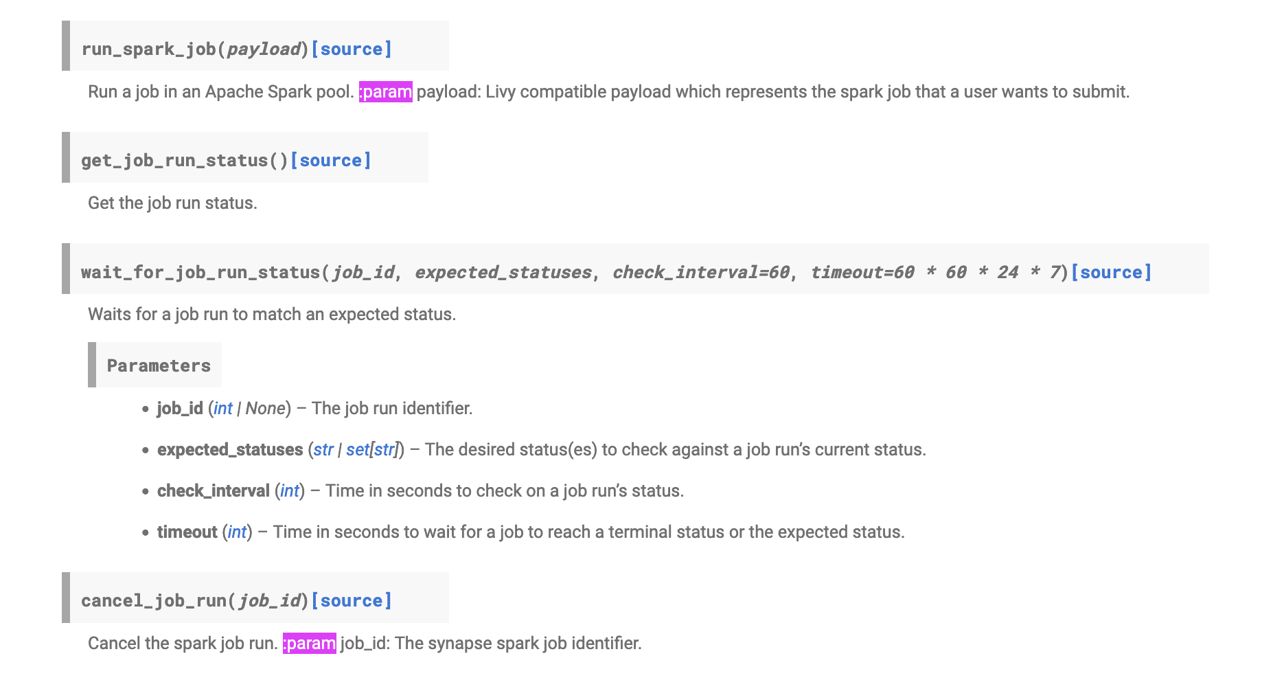 Poor formatting of some method docstrings where hiding parameters from being properly rendered in the Python API docs for AzureSynapseHook.
