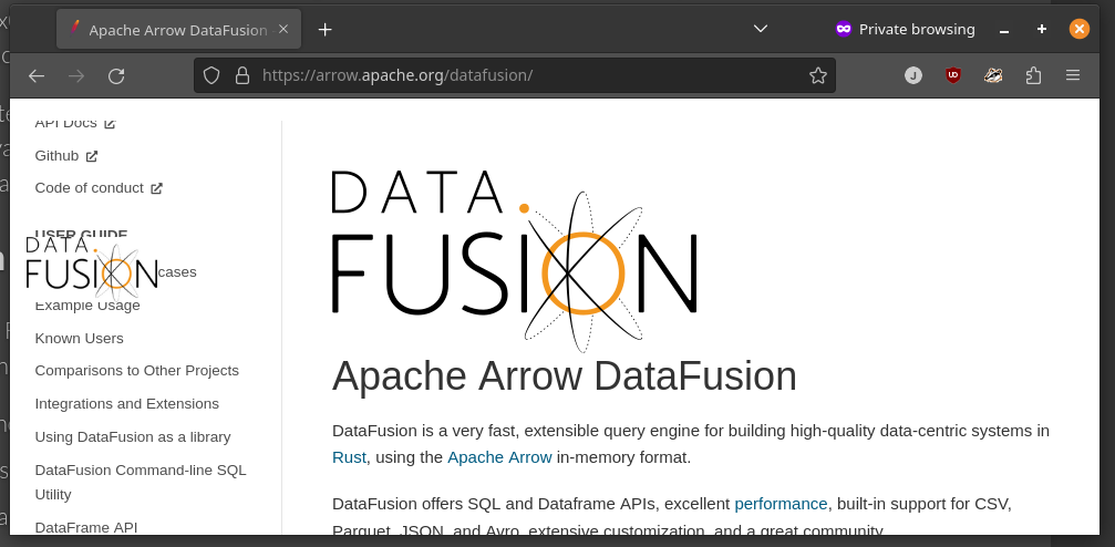 On documentation site: https://arrow.apache.org/datafusion/index.html
