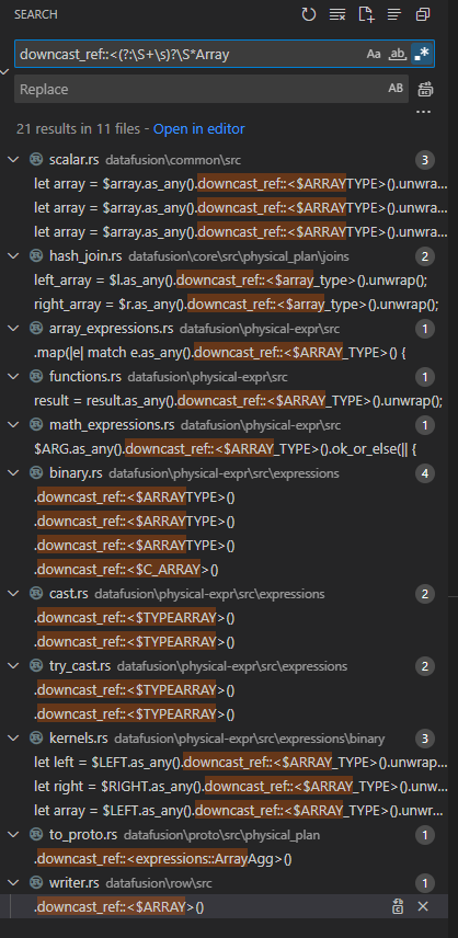 array.as_any().downcast_refbut they are used in macros as generic downcasting. You can find them in the following screenshot. They seem OK to me. What is your opinion?What changes are included in this PR?