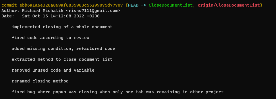 fixed code according to review added missing condition, refactored code extracted method to close document list removed unused code and variable renamed closing method fixed bug where popup was closing when only one tab was remaining in other project Made changes based on review