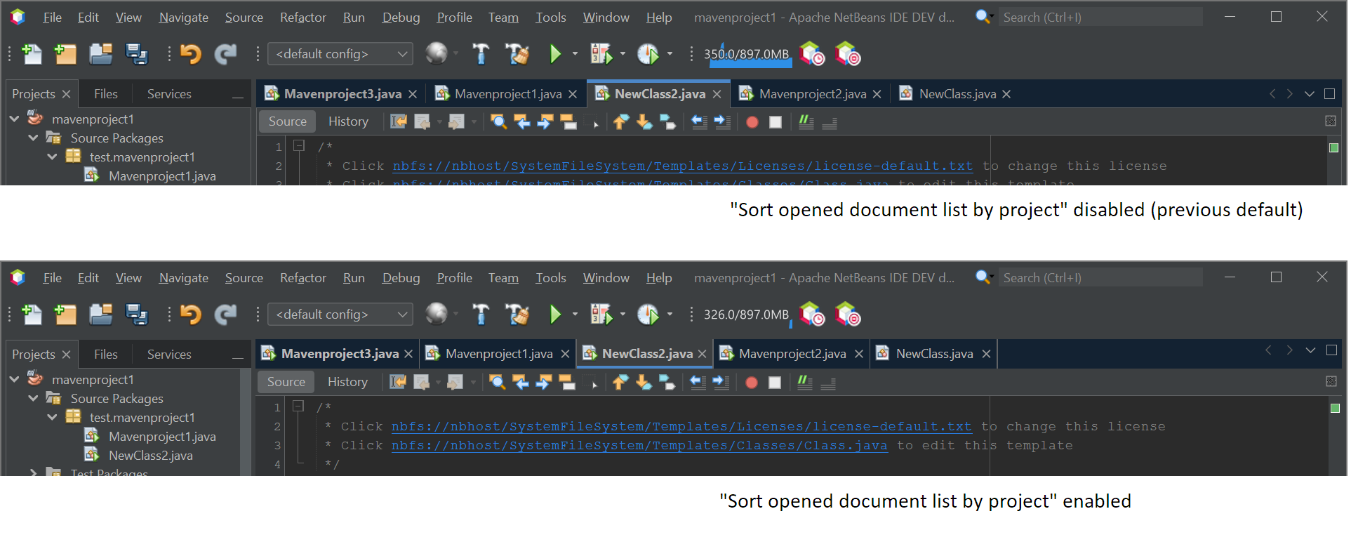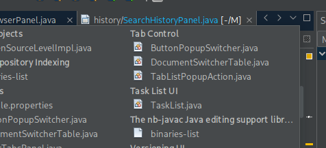 @mbien I started looking at it. Applying the past improvements to multitabs is going to be a somewhat bigger project, as it's a completely different implementation/code path with more generic functionality (multiple rows, group by project, tabs on left/right/bottom etc.). I might get back to it later. For reference (as Neil linked earlier), the logic for deciding when multitabs are used instead of regular tabs is here: And the entry point for multitabs is at org.netbeans.core.multitabs.TabbedImpl. |