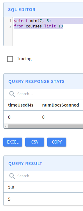 It instead uses the aggregation function. i.e. it finds the minimum value across all rows, rather than computing the minimum value of distance and 5 per row
