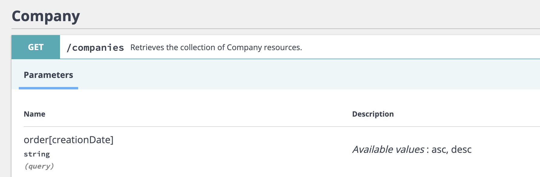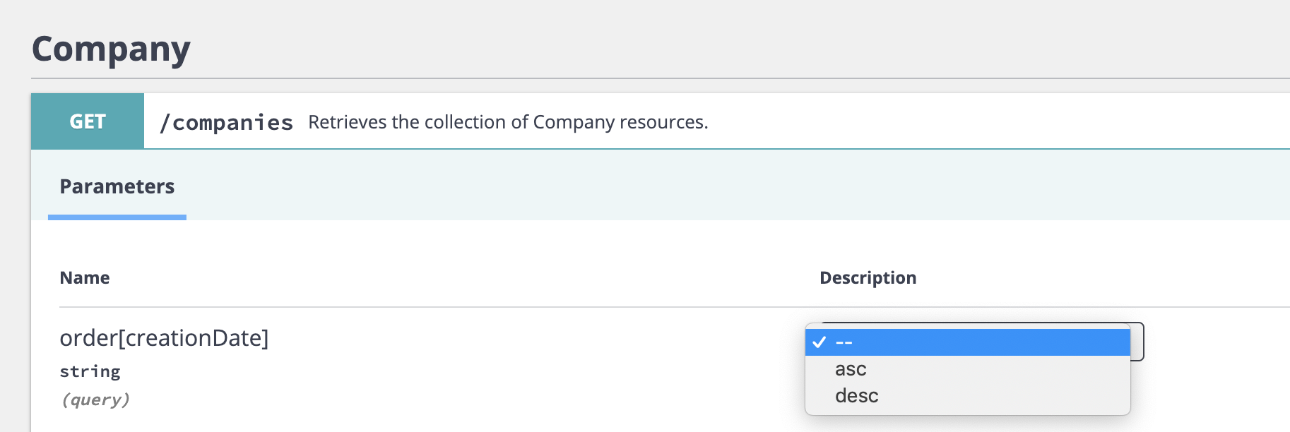 Actually the order filter parameter could also be used without a value, e.g. GET /books?order[datePublished]