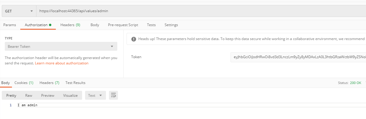 Now try to access api/values/admin that only can access, who has admin role