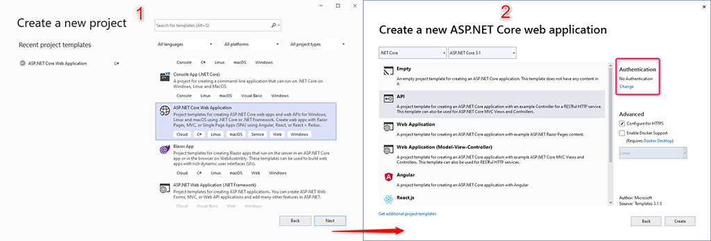 Create a blank WebApi application with no authentication. We will add authentication manually.