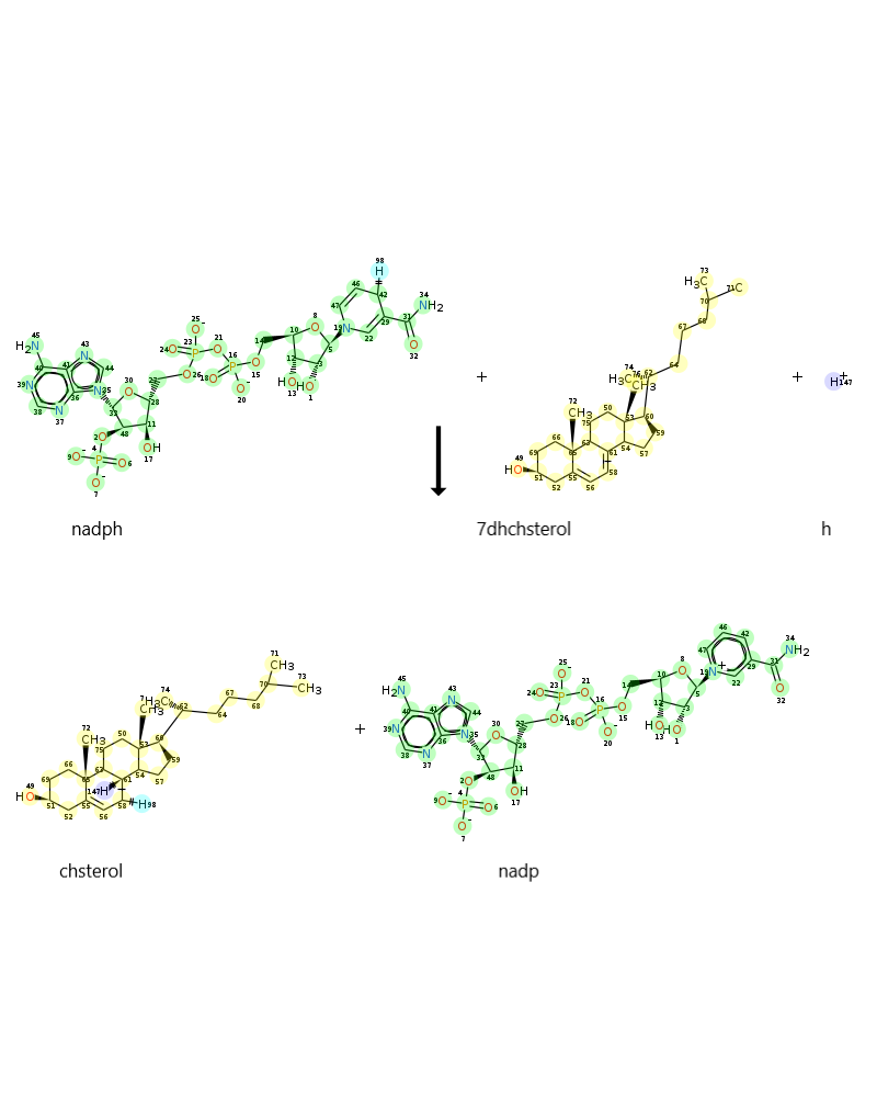 Here is my problem. When i performed AAM in the same reactions by using SMILES of metabolites which are obtained from VHM, i can not obtained the same mapping images.