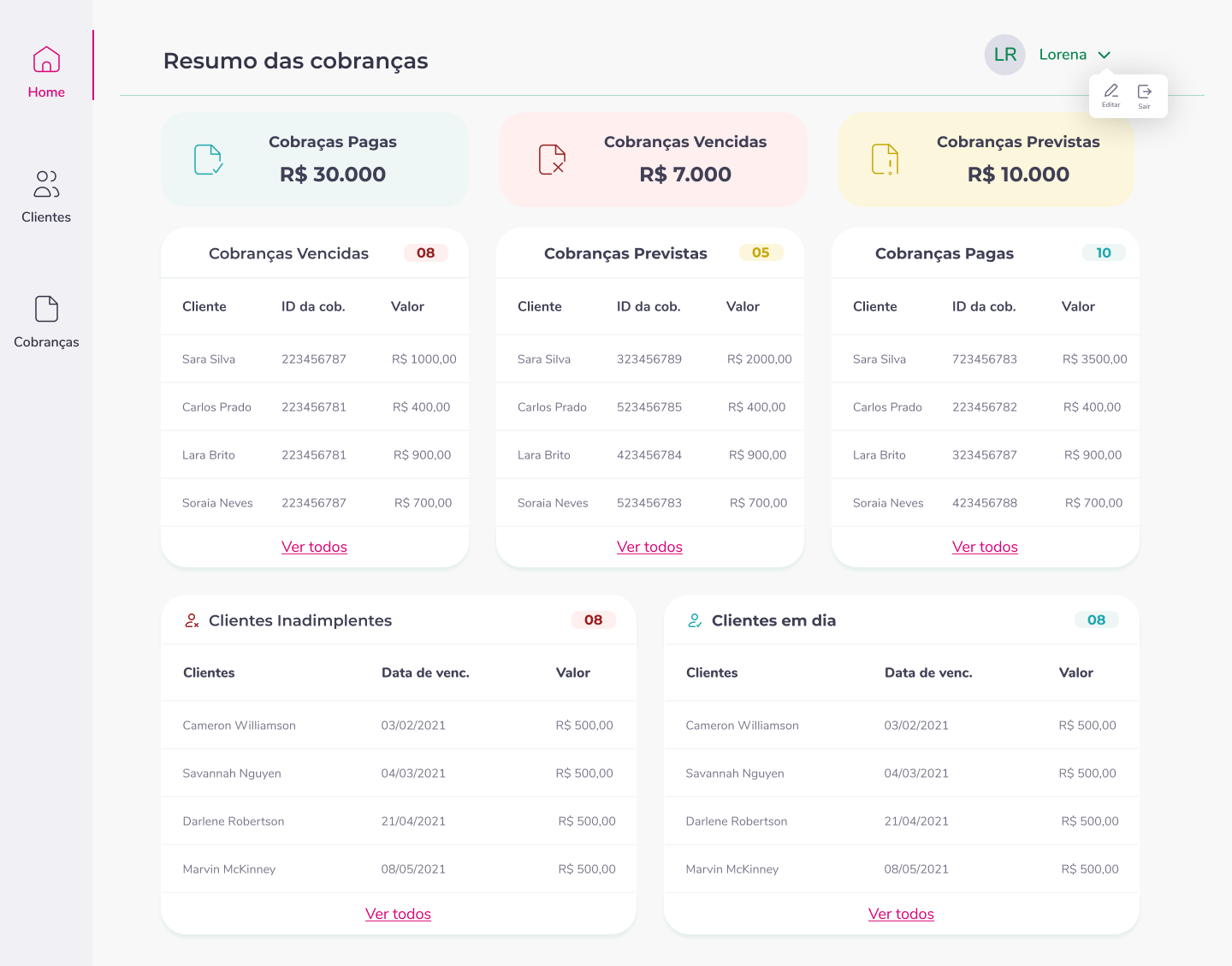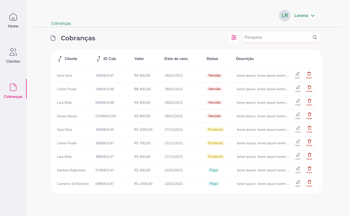 🎓 Desafio final do curso de Desenvolvimento de Sofware - Cubos Academy. O projeto é um aplicaçõa para gerenciamento de cobranças com as seguintes funcionalidades: