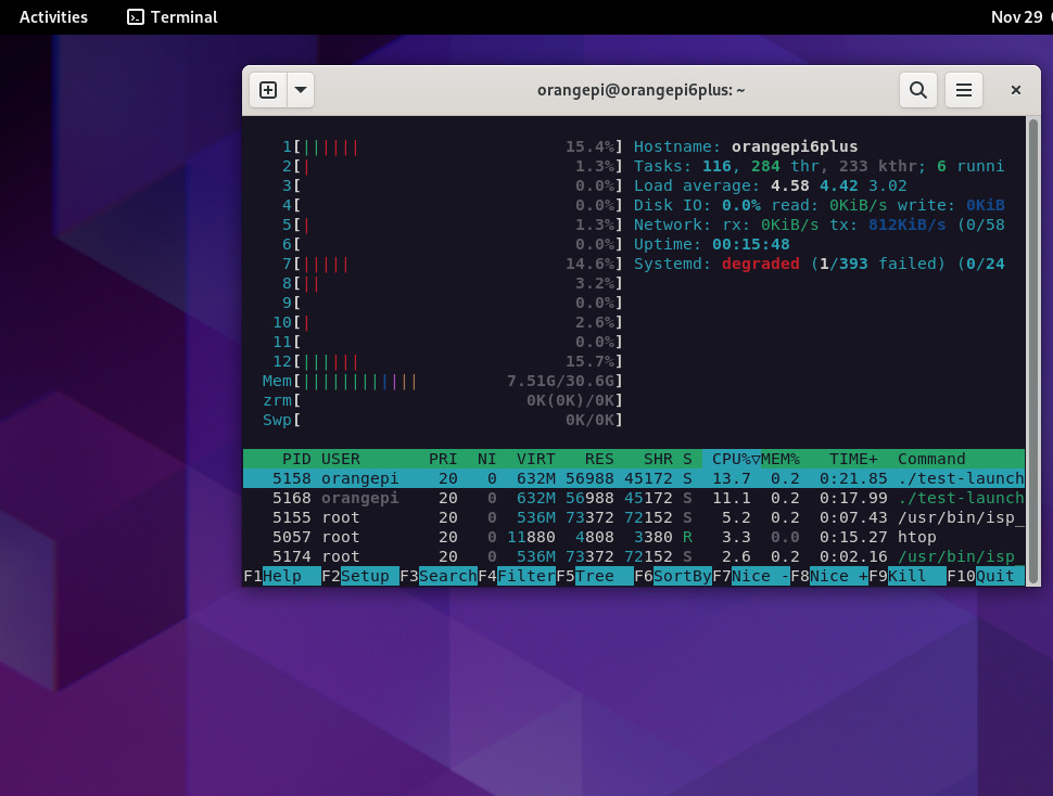 | CIX P1 | Orange Pi 6 Plus | Debian 12 | 32 GB | 6.1.44-cix | camera1 | ov13855 | 1920x1080 | 30 fps |