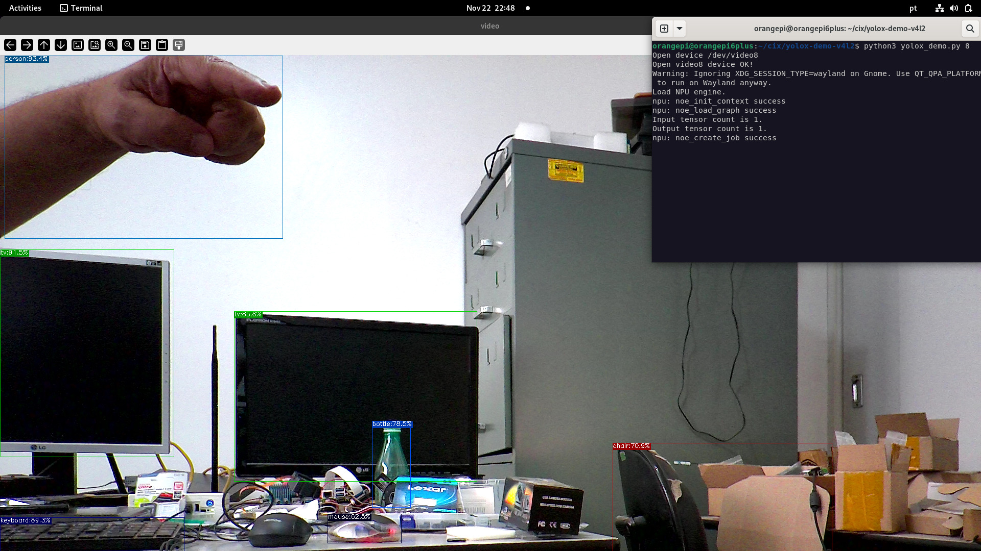 The NPU experiments with the camera will be possible when cix-opencv deb package is available, it might have some Hardware acceleration.