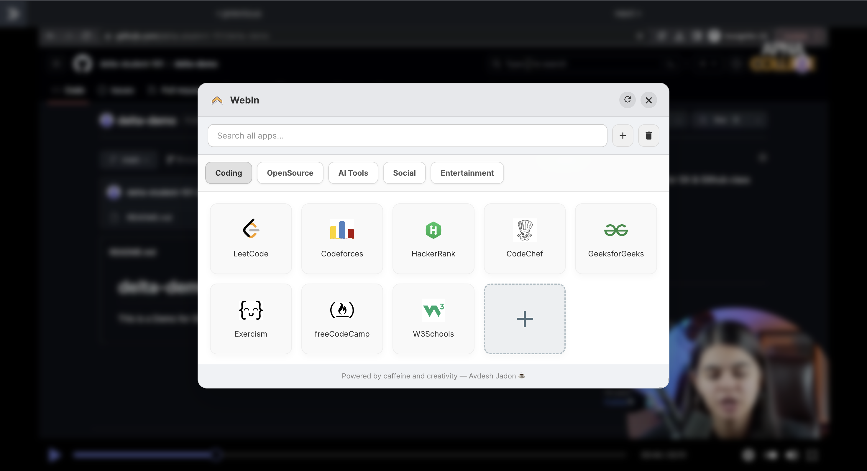 WebIn is a powerful, lightweight browser extension that transforms your new tab into a sleek, organized, and fully customizable dashboard. It's designed for productivity, allowing you to access all your favorite websites and tools from a single, beautiful interface without the clutter of traditional bookmarks.