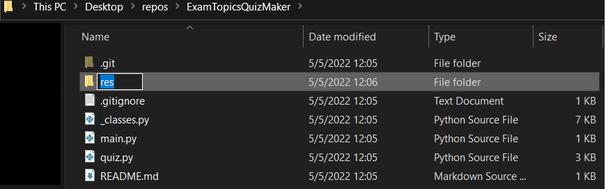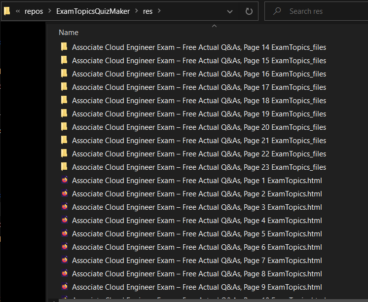 git clone https://github.com/awfulwaffle77/ExamTopicsQuizMaker.gitor by going in the upper part of the page, clicking Code > Download ZIP (and unzip the archive) - Create a new directory in the directory of the repository(inside ExamTopicsQuizMaker),