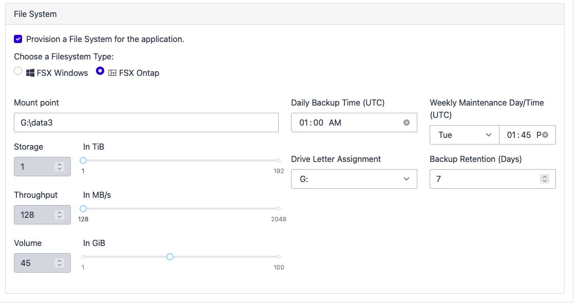 Looks good. Thank you for fixing the maintenance start time bug. And, I like that we're getting setup to support FSx ONTAP on Linux workloads launched on EC2!