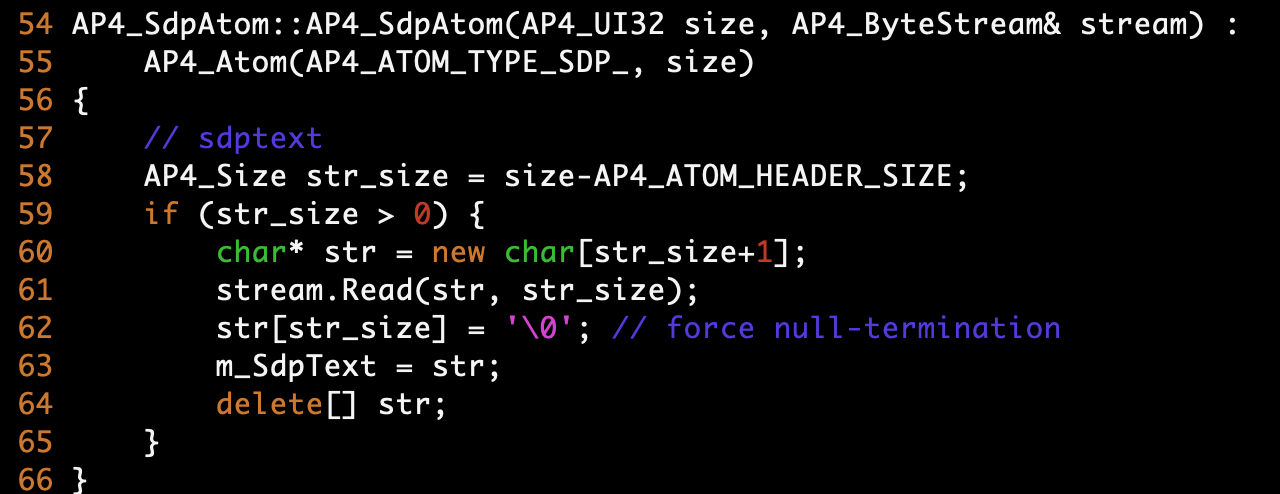 #6 0x873013b in AP4_SdpAtom::AP4_SdpAtom(unsigned int, AP4_ByteStream&) /mnt/data/playground/mp42-a/Source/C++/Core/Ap4SdpAtom.cpp:60