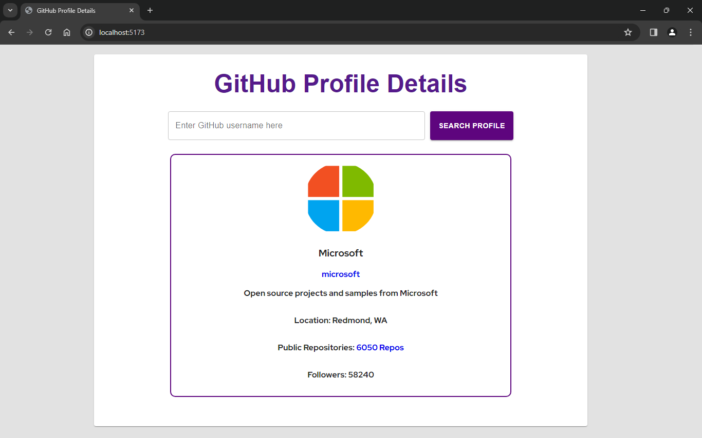 react-mini-projects Multiple Mini projects in React. 1. Signup & Login page in React Home Signup Login 2. Counter Game: Understanding Recoil in React Before using Recoil - Multiple components rendered which doesn't need to render again & again. After using Recoil - Only counter number gets updated. 3. Weather App: Weather App using React Home Page | Search the Location here. Result | Weather Search Results 4. QR Code Generator: QR Code Generator App using React Home Generated QR Code 5. GitHub Profile Details Viewer in React using GitHub Api. Microsoft details Google details